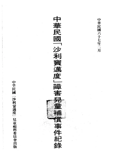 「財團法人中華民國沙利竇邁度障害兒童福利會」於1976年2月26日成立,5月4日登記設立,其目的為管理與分配補償金及協助照顧受害者將來醫療、復健、教育等問題。政府當時表明了照顧障害兒童的心意。